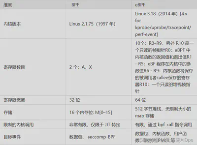 正是为了克服 BPF 的限制,eBPF 应运而生。eBPF 于 2014 年(3.18 版本)年首次引入 Linux 内核,并在此后的几年中经历了快速的发展和完善。