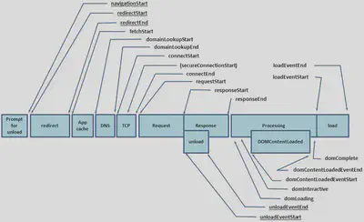 在 skywalking-client-js 中,所有的性能指标都是根据 W3C 规范中定义的 Navigation Timing API 来计算的。我们可以使用 window.performance.timing 属性获得一个描述页面的 PerformanceTiming 对象。PerformanceTiming 接口包含的属性提供了当前页面加载和使用过程中发生的各种事件的性能计时信息。