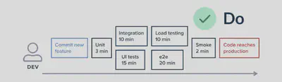 一个完善的流水线拥有多个质量检测点(例如单元测试或安全扫描),以测试功能的质量和适用性于生产部署。在高速开发环境(并且有庞大的开发团队)中,并不是所有功能都被期望立即达到生产。一些功能甚至在最初的部署版本中会相互冲突。