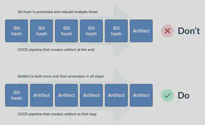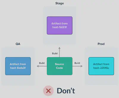 与先前一点的推论(所有环境都应部署相同的二进制/包)是部署工件应仅构建一次。