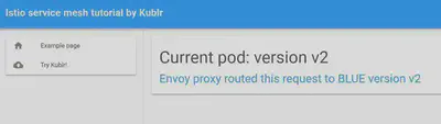 当导航到这个节点时,你应该看到实例程序的 v1 版本,因为它是唯一部署和在 VirtualService 中唯一可路由的版本。