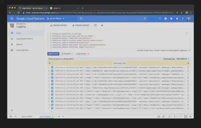 如果您还记得,Banzai formatter会自动将运行时/堆栈信息(包括函数名和行号)标记在日志消息里;在排查故障时非常有用。我们还使用Logrus的JSON formatter。在下面显示的 Stackdriver 控制台中,注意下面的每个日志条目如何在消息中包含 JSON 有效负载,包含日志级别、函数名、日志条目的起始行和消息。