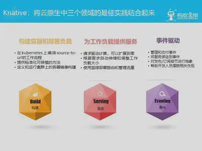 此外,knative 在负载的支撑上,不拘泥于传统的 FaaS,可以支持 BaaS 和传统应用,在落地时适用性会更好,使用场景会更广泛。(备注:在这里我个人有个猜测,knative 名字中 native 可能指的是 native workload,即在 k8s 和 cloud native 语义下的原生工作负载,如果是这样,那么 google 和 knative 的这盘棋就下的有点大了。)
