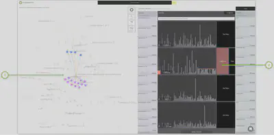 Figure 4. Glasnostic 控制台显示之前设置的通道 (2) 的细化通道 (1),首先根据连接池和请求速率参数配置断开非关键任务客户端,从而延迟了关键客户端 (3) 的熔断。