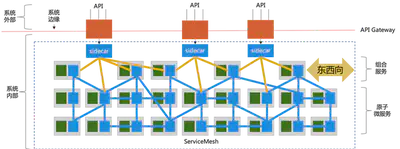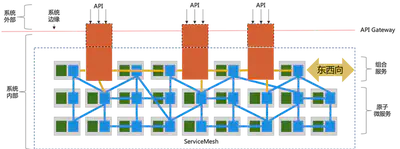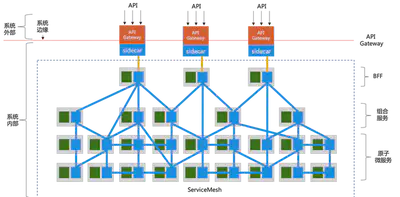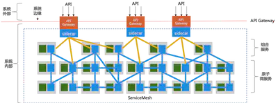 - 原子微服务和组合服务部署于 系统内部,在采用 Service Mesh 的情况下,由 Service Mesh 提供服务间通讯的能力