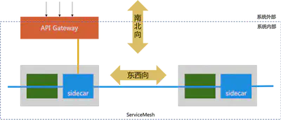 - 南北向通讯:指服务对外部提供访问,通常是通过 API Gateway 提供的 API 对外部暴露,其通讯流量是从系统外部进入系统内部。