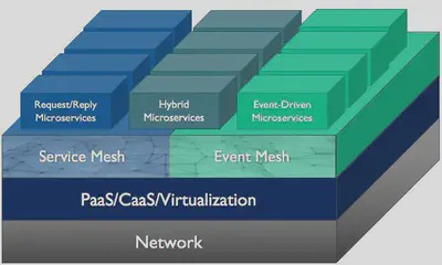 虽然 Service Mesh(服务网格)可以很好地支持同步 RESTful 和一般的<请求 - 回复>交互,但它不支持异步、事件驱动的交互,不适合将云原生微服务与遗留应用程序连接,也不适用于 IoT。