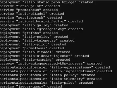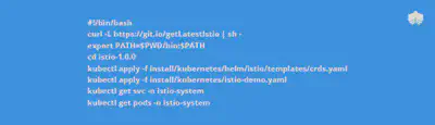 Istio 部署在单独的 Kubernetes 命名空间里:istio-system,我们过后再来验证。现在,复制如下内容到文件,命名为 install_istio.sh,并保存。添加可执行权限,运行以安装 Istio 和相关工具。
