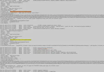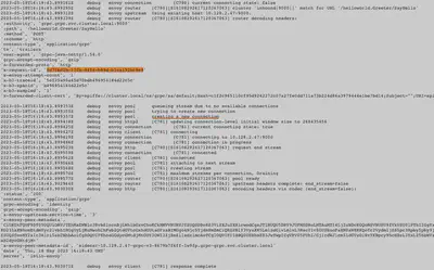 - 从上述跟踪中获取请求 ID,并在 Istio 代理日志中查找。