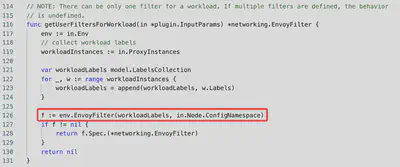 f := env.EnvoyFilter(workloadLabels) // 集群范围查找