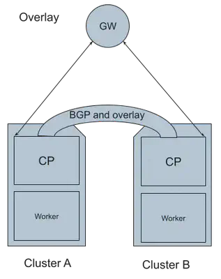 在某些情况下,你可能无法访问网关以修改其设置,或者它可能不支持 BGP 对等连接。在这种情况下,你可以使用 IPIP overlay 来封装流向目标集群的流量。overlay 网络允许网络设备在底层网络(称为底层)上相互通信,而底层网络不需要了解连接到 overlay 网络的设备。
